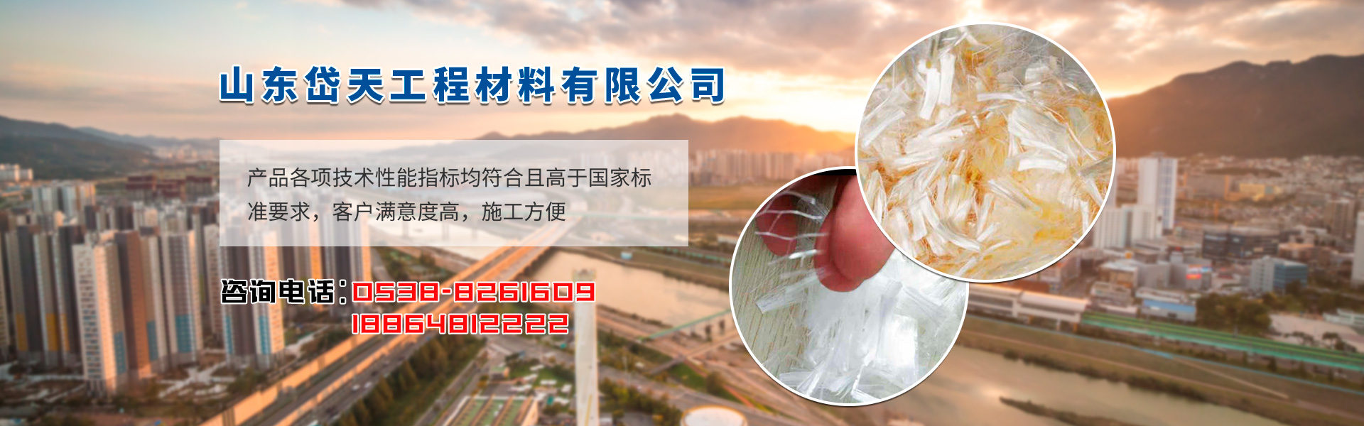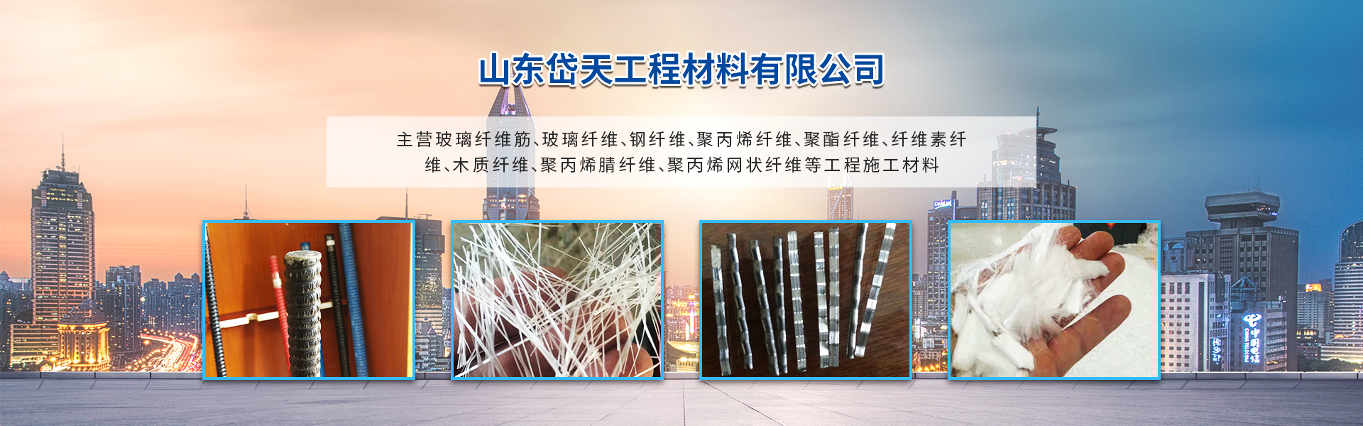 山東岱天工程材料有限公司位于泰山腳下;北臨泉城濟南,南鄰孔孟故里;處于博萊,泰萊,濟青高速公路從此經過,四通八達。公司力量雄厚,產品種類齊全,并與全國多家科研單位、大專院校、設計院建立了密切的協作關系。 公司主要生產銷售玻璃纖維增強筋、玻璃鋼錨桿、玻璃纖維、聚丙烯纖維、聚酯纖維、纖維素纖維等系列工程施工材料。產品各項技術性能指標均符合且高于國家標準要求。