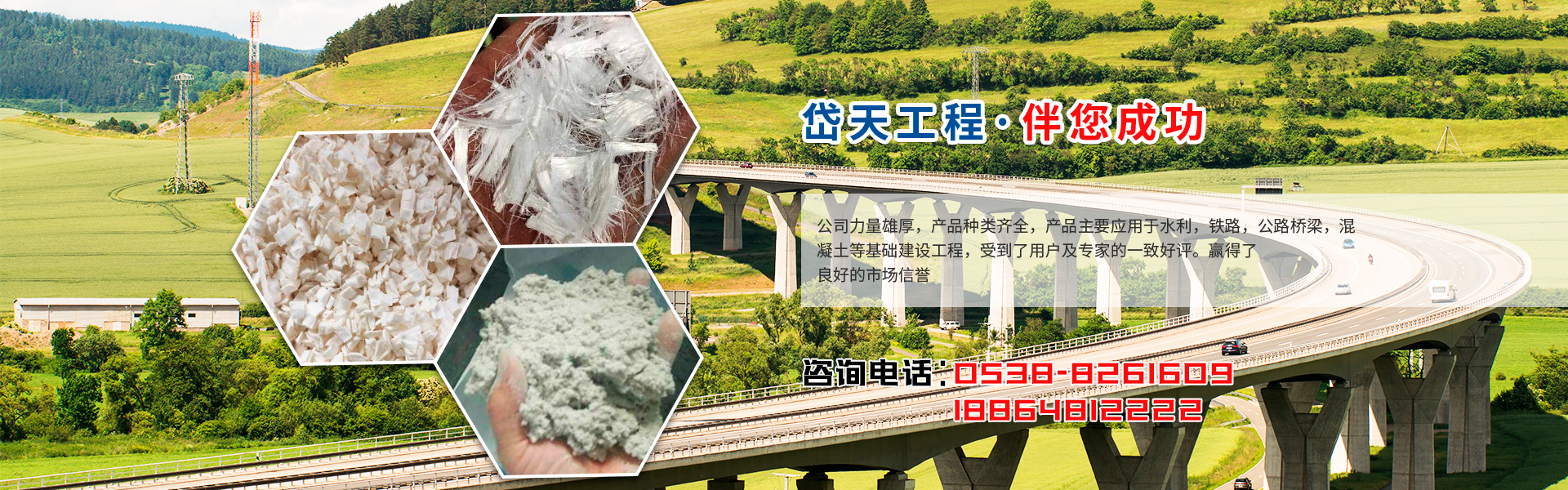 山東岱天工程材料有限公司位于泰山腳下;北臨泉城濟南,南鄰孔孟故里;處于博萊,泰萊,濟青高速公路從此經過,四通八達。公司力量雄厚,產品種類齊全,并與全國多家科研單位、大專院校、設計院建立了密切的協作關系。 山東岱天工程材料有限公司主要生產銷售玻璃纖維增強筋、玻璃鋼錨桿、玻璃纖維、聚丙烯纖維、聚酯纖維等系列工程施工材料。產品各項技術性能指標均符合且高于標準要求。客戶滿意度高,施工方便,其產品主要應用于水利,鐵路,公路橋梁,混凝土等基礎建設工程,均受到了用戶及專家的一致好評。贏得了良好的市場信譽。